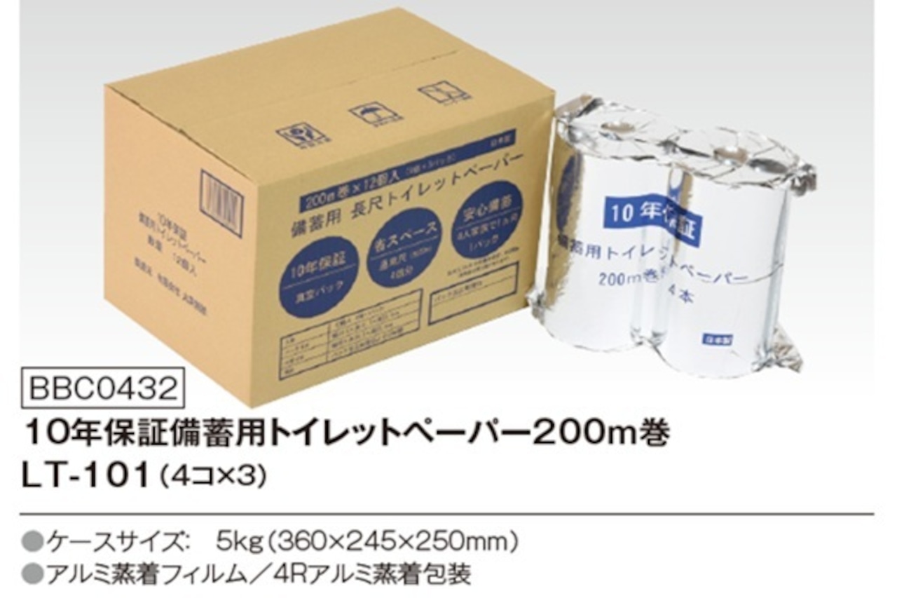 商品名:10年保証備蓄用トイレットペーパー200m巻(4個×3)